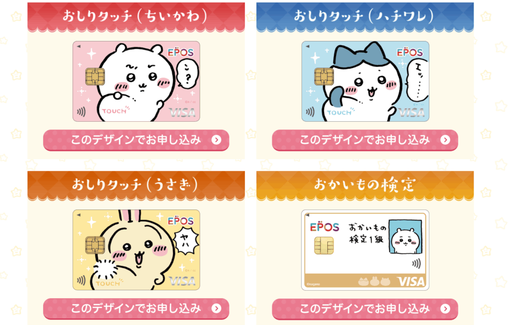 エポスカードは公式サイトとマルイ店舗を中心に常時200種類以上のデザインを用意しています。