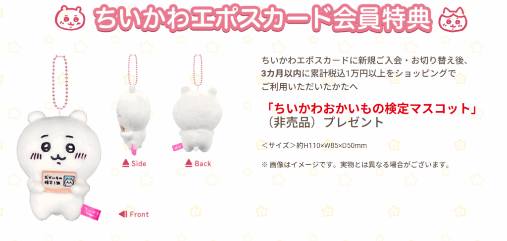 入会特典は描き下ろしアクリルスタンド3体セット、エポスポイント2,000ptプレゼント、さらに抽選で限定ぬいぐるみが当たるキャンペーンも常設。